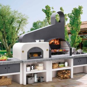 Gratar Andros 2 cu structura metalica interior hota, vatra consolidata cu perete dublu cu un continut mare de aluminiu,  blat din Marmotech finisaj antichizat, gratar standard 76x40cm , tratament hidrofug blat.