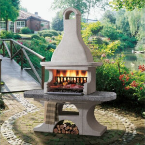 Gratar Andros 2 cu structura metalica interior hota, vatra consolidata cu perete dublu cu un continut mare de aluminiu,  blat din Marmotech finisaj antichizat, gratar standard 76x40cm , tratament hidrofug blat.