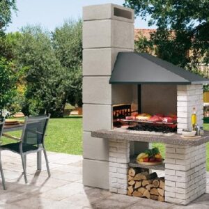 Gratar Andros 2 cu structura metalica interior hota, vatra consolidata cu perete dublu cu un continut mare de aluminiu,  blat din Marmotech finisaj antichizat, gratar standard 76x40cm , tratament hidrofug blat.