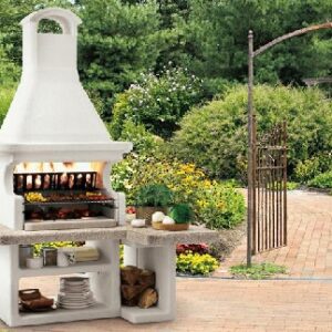 Gratar Andros 2 cu structura metalica interior hota, vatra consolidata cu perete dublu cu un continut mare de aluminiu,  blat din Marmotech finisaj antichizat, gratar standard 76x40cm , tratament hidrofug blat.
