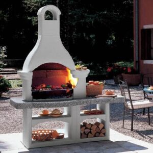 Gratar Andros 2 cu structura metalica interior hota, vatra consolidata cu perete dublu cu un continut mare de aluminiu,  blat din Marmotech finisaj antichizat, gratar standard 76x40cm , tratament hidrofug blat.