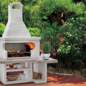 Gratar Andros 2 cu structura metalica interior hota, vatra consolidata cu perete dublu cu un continut mare de aluminiu,  blat din Marmotech finisaj antichizat, gratar standard 76x40cm , tratament hidrofug blat.