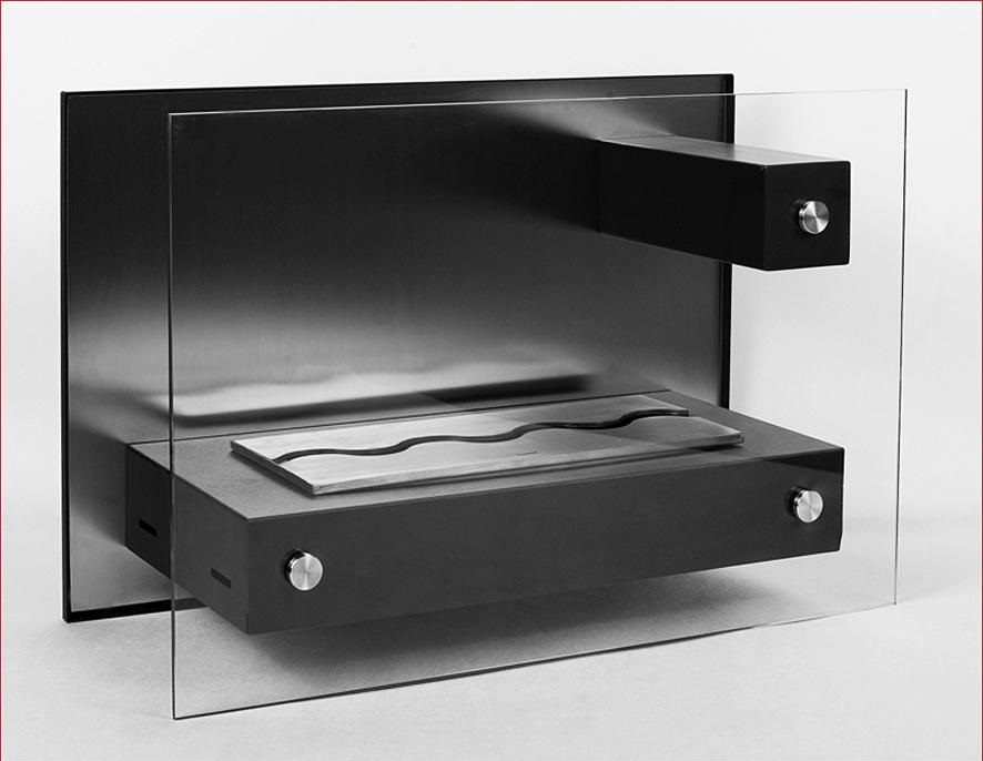 Materialele folosite (oțel inoxidabil și sticlă) și focul vesel care dansează închis între ele dau un efect uimitor.