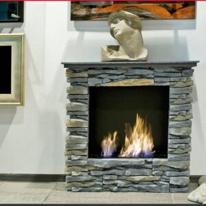 Elementul decorativ poate fi din otel oglinda pe partea din spate a biosemineului, efectul de oglinda sporește impresia vizuală a focului. De asemenea, este posibil să alegeți modelul Izalko cu trei lame de sticlă înalte de 150 mm.