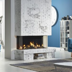Global 100 BF Triple DRU este un focar clasic pe gaz de 1 metru lățime, cu vedere pe 3 laturi si poate fi vizualizat din toate unghiurile. Interiorul este disponibil în varianta ceraglass negru sau oglindă și dispune de o putere termică generoasă de 7,5 kW.