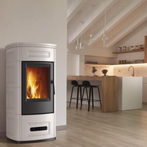 Marilena Plus, soba pe peleți cu un design slim, minimalist și elegant, are o adâncime de doar 35 cm, integrându-se perfect în orice încăpere.