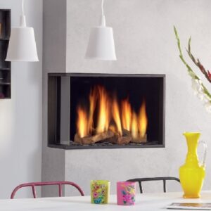 Vă puteți bucura de confortul unui foc de gaz cu mirajul unui foc de lemn real.