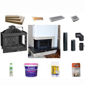 Pachet semineu complet, gata de montaj. Include: module montaj realizate din piatra Vratsa Tiger si lemn, focar din fonta INVICTA 700 PHILOS, 10-14 KW, 5 ani garantie; 4 mp placi fireboard; un adeziv fireboard; tubulatura metalica pentru racordare; 2 grile 16×32 cm albe; 2 grile 10×20 cm albe; 1 amorsa; un sac de 5 kg super rigips; un sac de 25 kg de adeziv alb; 1 galeata de tencuiala decorativa alba; ambalaj